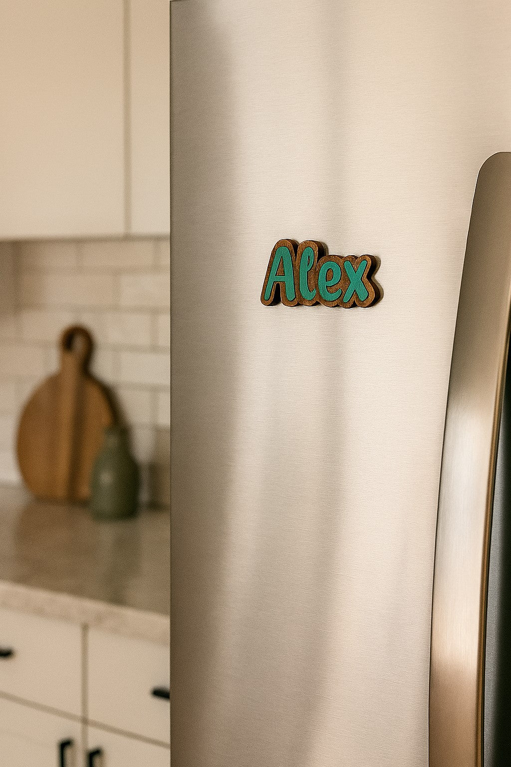 Trasforma il tuo spazio con questa elegante calamita in legno personalizzata con il nome che desideri. Perfetta per frigoriferi, lavagne magnetiche e superfici metalliche, combina funzionalità e stile naturale. Realizzata in legno di qualità, ogni pezzo è unico e rispecchia la tua personalità. Ideale come regalo speciale per amici e familiari, aggiunge un tocco caldo e personale a qualsiasi ambiente. Scegli il tuo nome e crea un accessorio che racconta la tua storia.