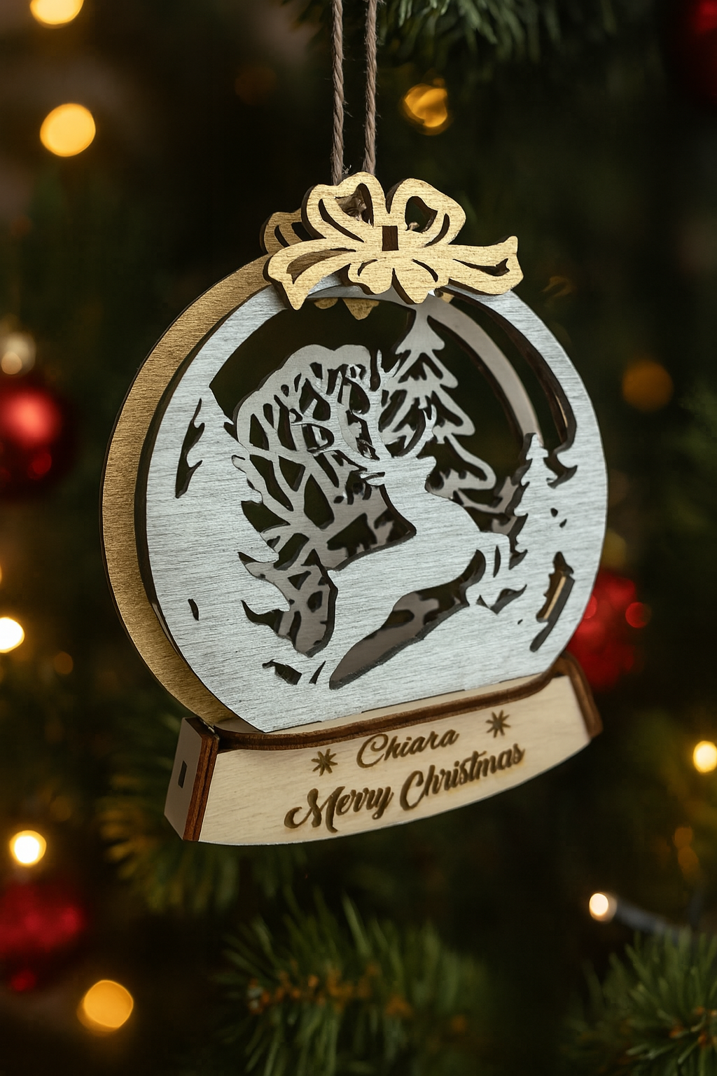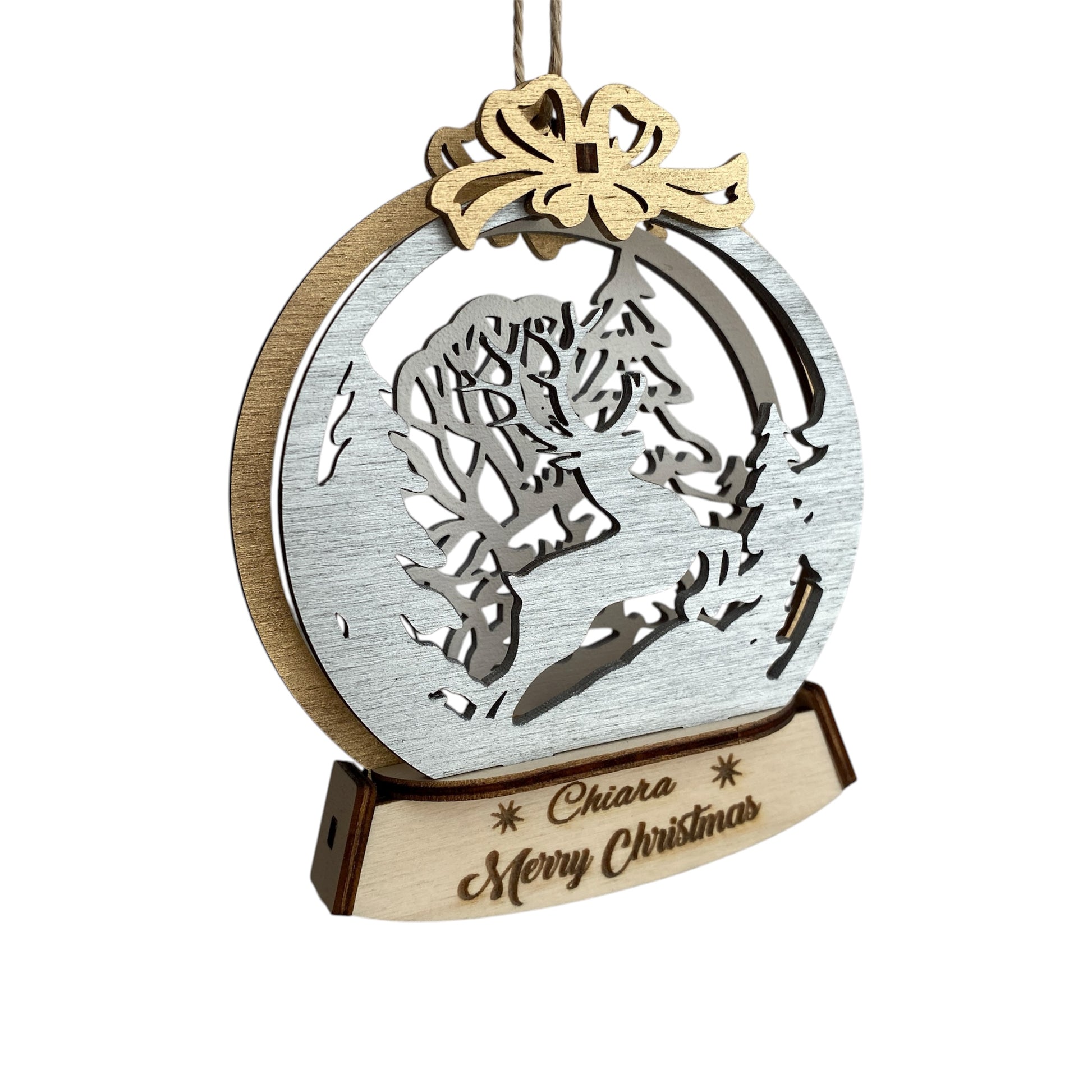 Questa elegante decorazione in legno 3D da 3 mm, impreziosita da un delicato fiocco rosso in organza. Perfetta da appendere all’albero, alle finestre o come dettaglio su pacchi regalo, porta calore e tradizione in ogni angolo della casa.