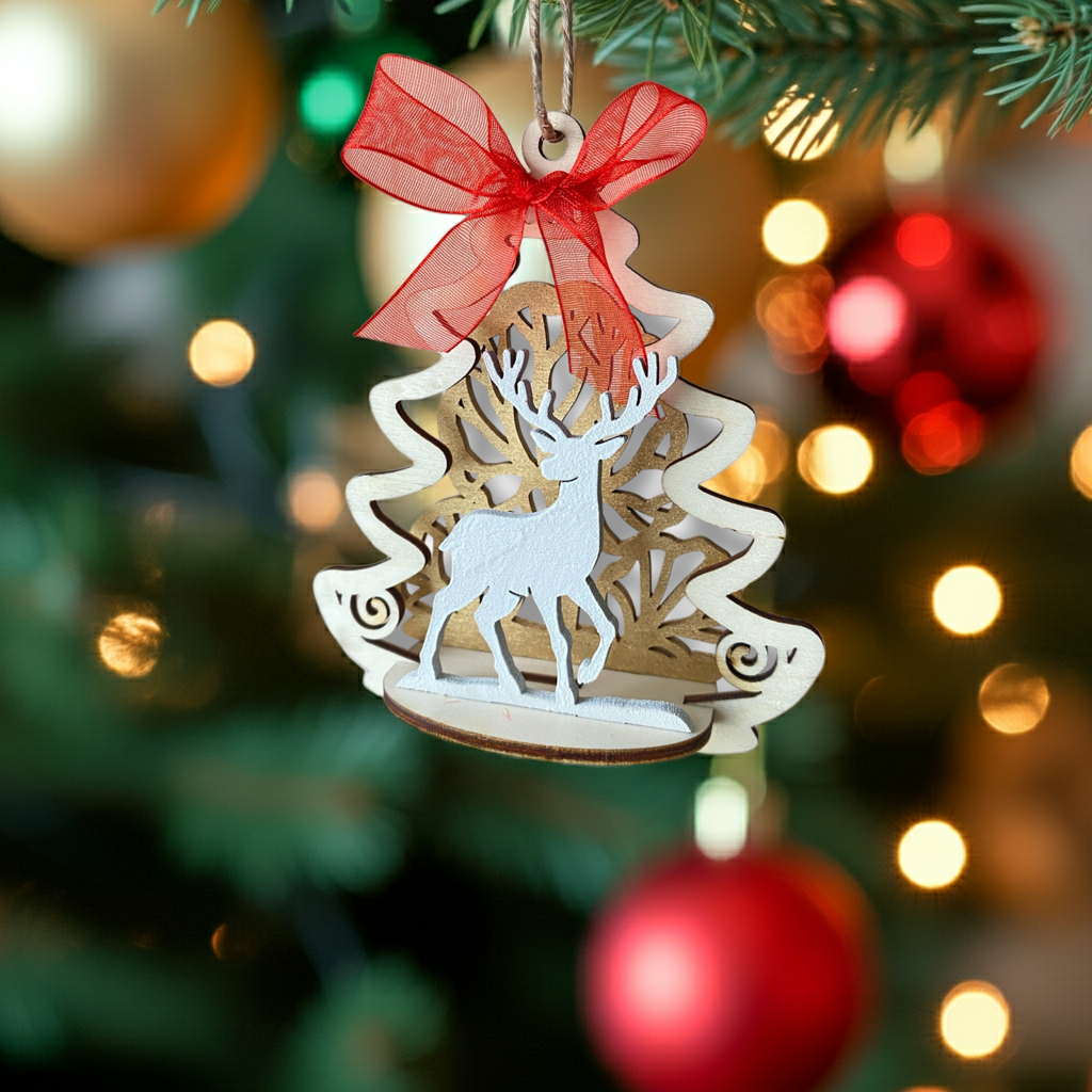 Questa elegante decorazione in legno 3D da 3, impreziosita da un delicato fiocco rosso in organza. Perfetta da appendere all’albero, alle finestre o come dettaglio su pacchi regalo, porta calore e tradizione in ogni angolo della casa.